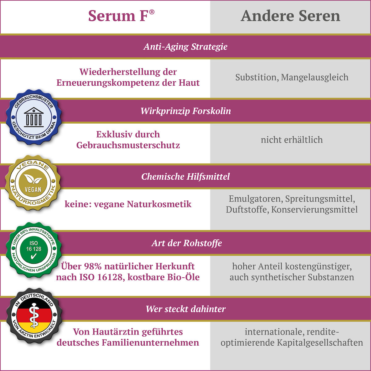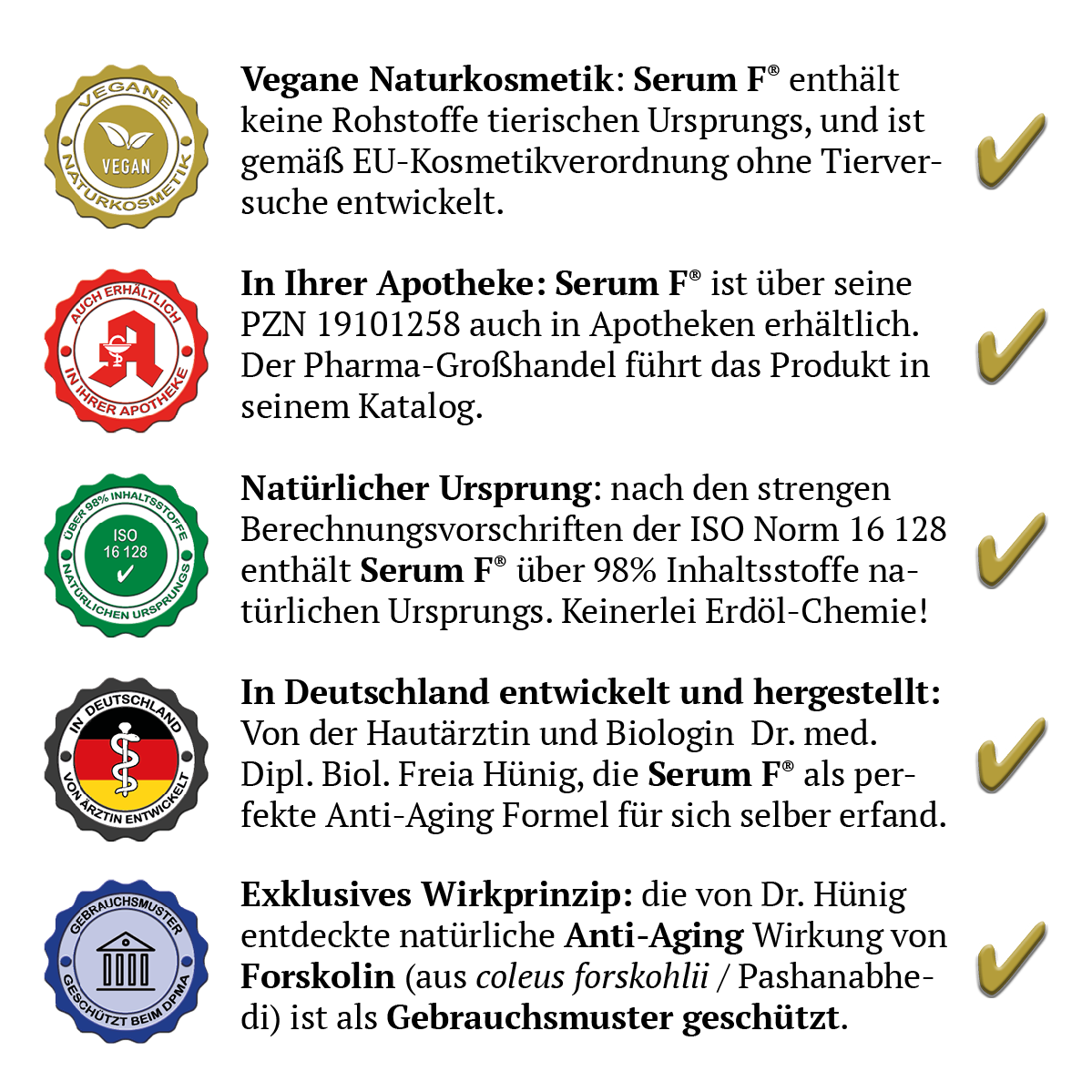 Serum F® ist frei von Emulgatoren, Duftstoffen und Erdölprodukten.
